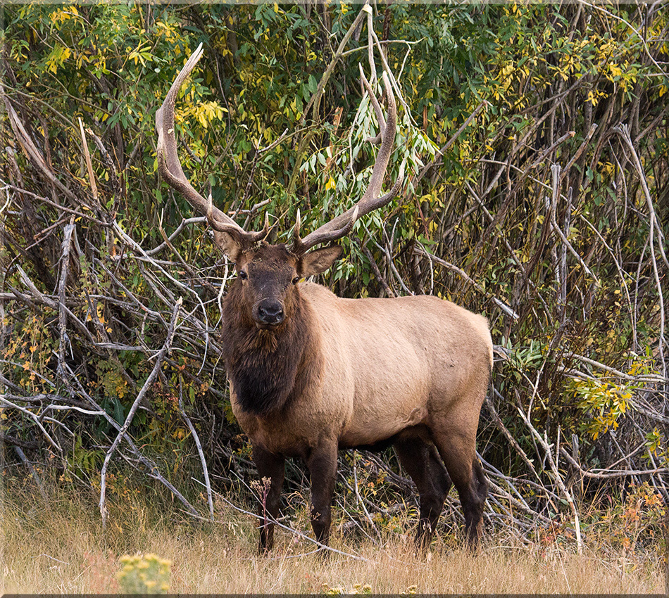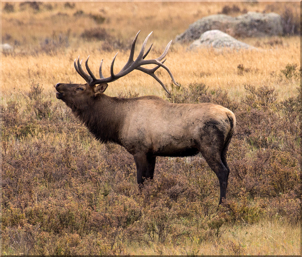 breaking brush to show off his new horns when a rival bugling in the distance diverted his attention